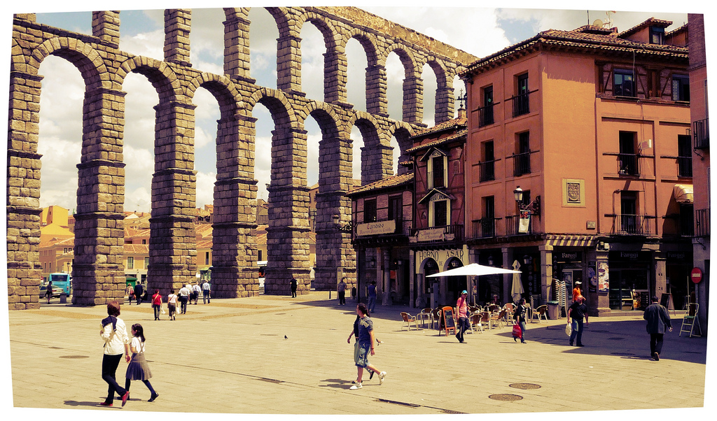 Segovia. (Castilla y León). Piazza del Azogüejo ed Acquedotto Romano.